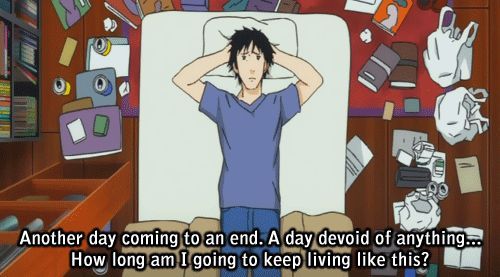 that feel when the last anime you watched was so good that nothing feel good anymore and emptiness starts creeping in because you arent consuming because it doesnt feel good to consume anything not better than previous one.