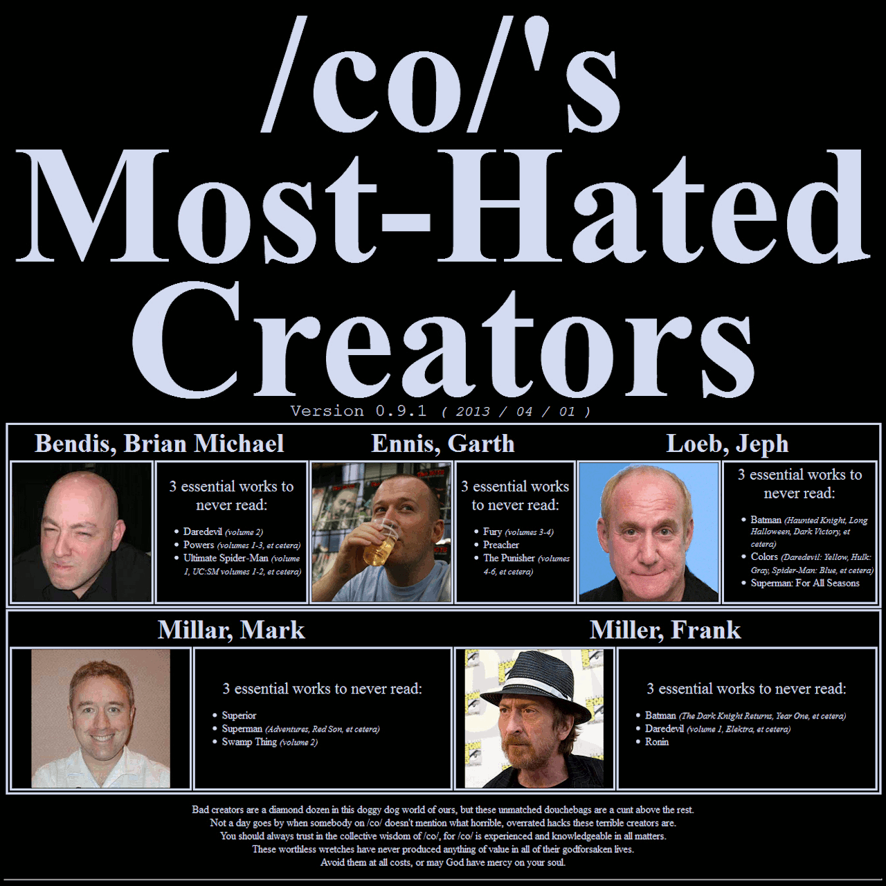 Bendis, Brian Michael.jpg, Brubaker, Ed.png, DeMatteis J.M.jpg, Ellis, Warren.jpg