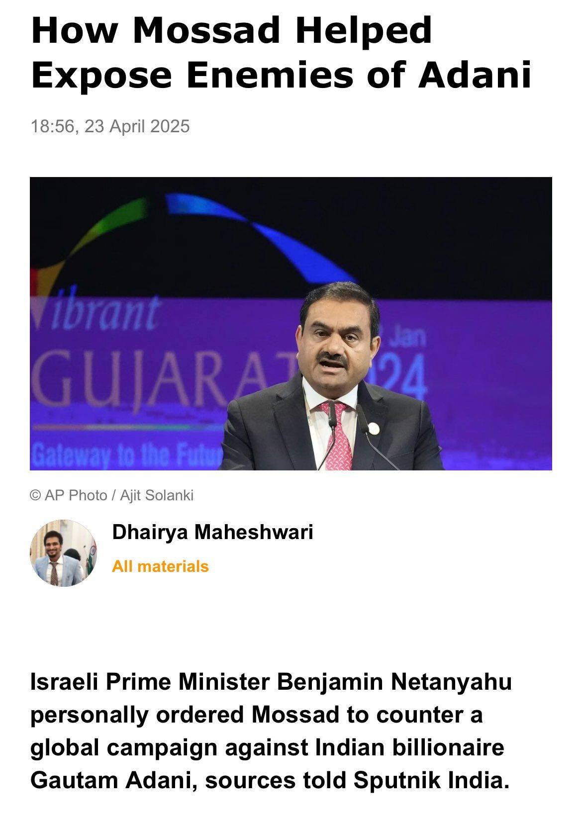 So Adani was working with Mossad? Great. Now I’m a lifelong shareholder.
