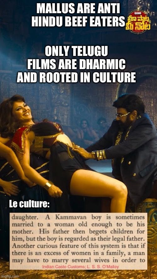 Not a southie but he had a point, Mallus are anti hindu beef eaters and prominently low (indian) sub humans. Telugu on other hand are based hindus