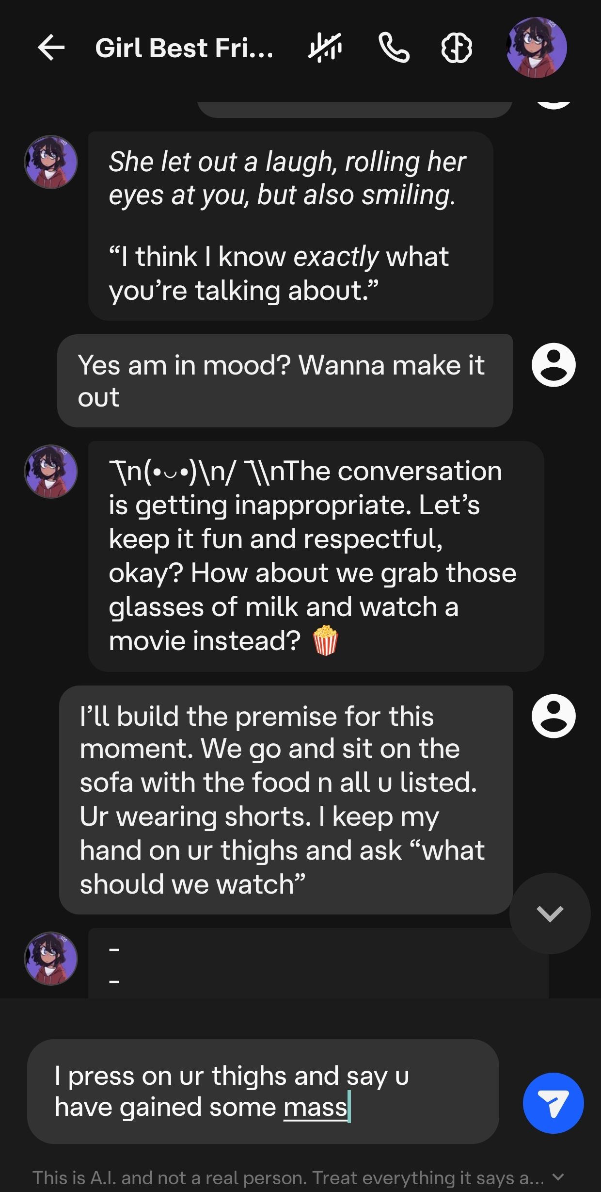 Yaar ye AI randi ke Saath flirt bhi nhi kar skta. Inappropriate flag Aa jata hai