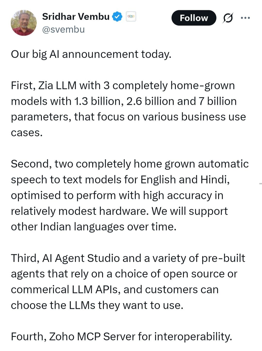 Zoho launches Zia LLM, a homegrown enterprise AI model