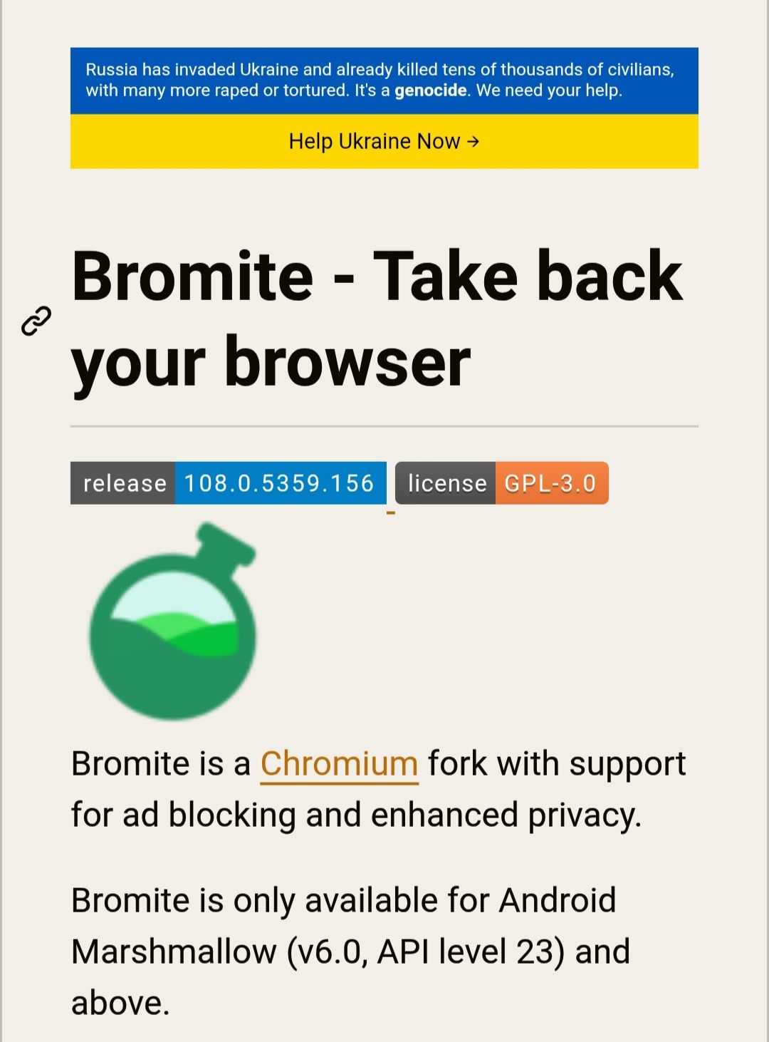 atleast link the active fork https://github.com/uazo/cromite