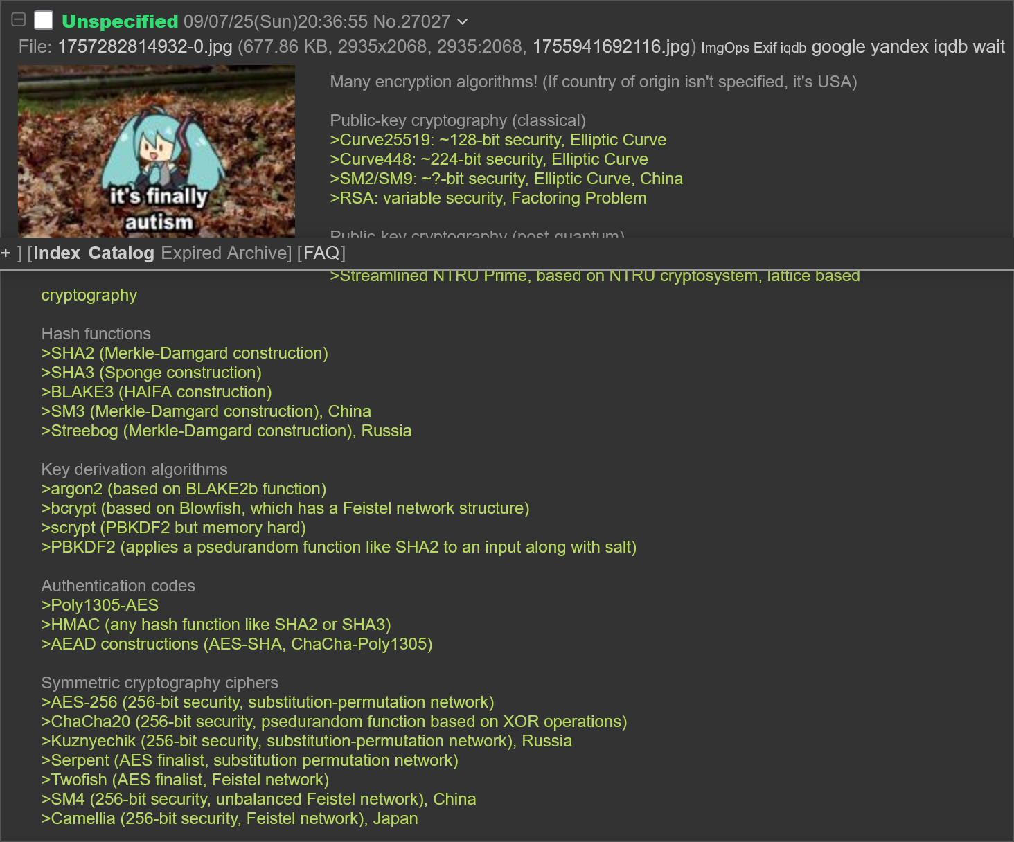 Link dumping anan. Interesting imageboards and two cryptography related blogs. Nothing much of value there tbh.