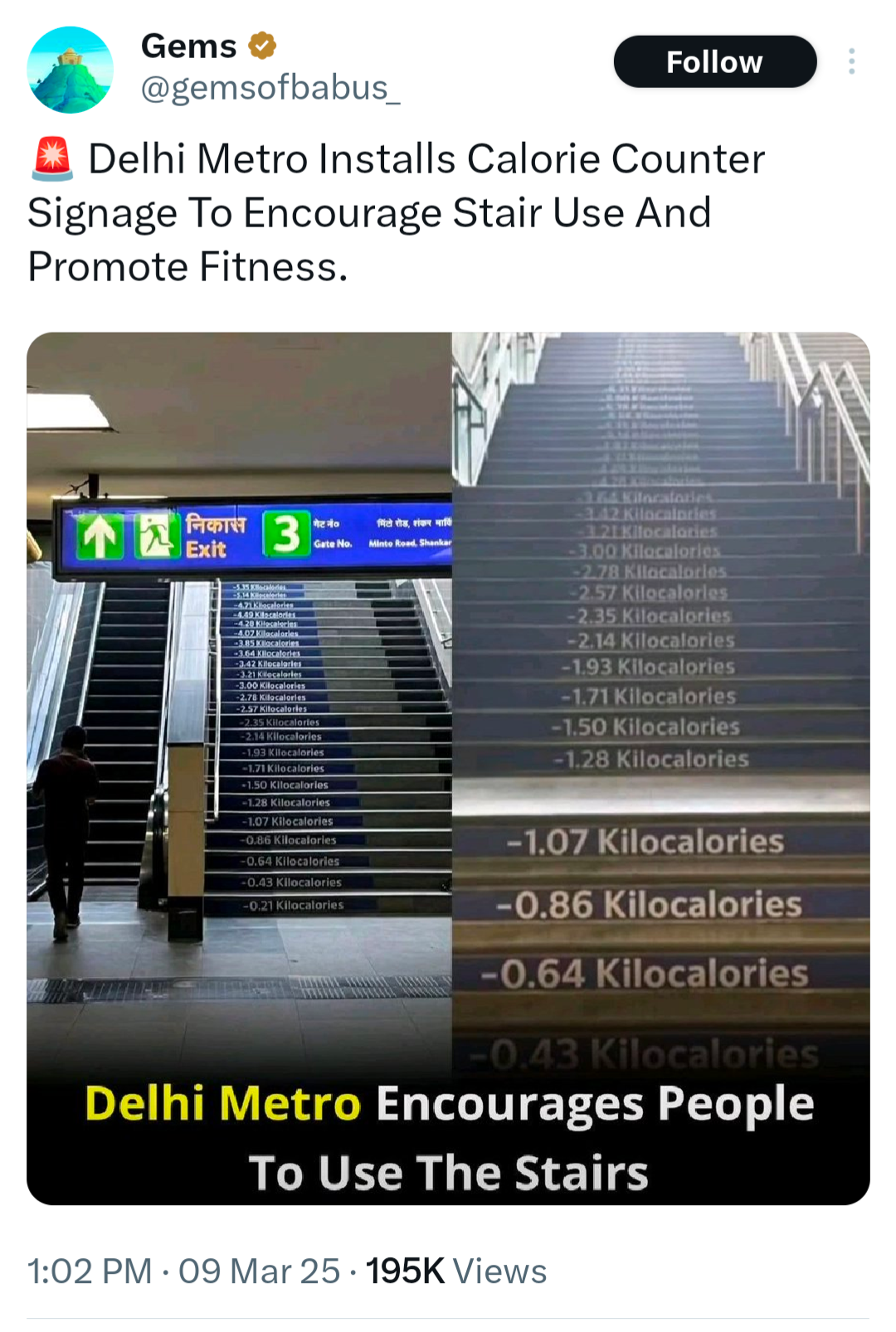 >thinks about calories spent on stairs