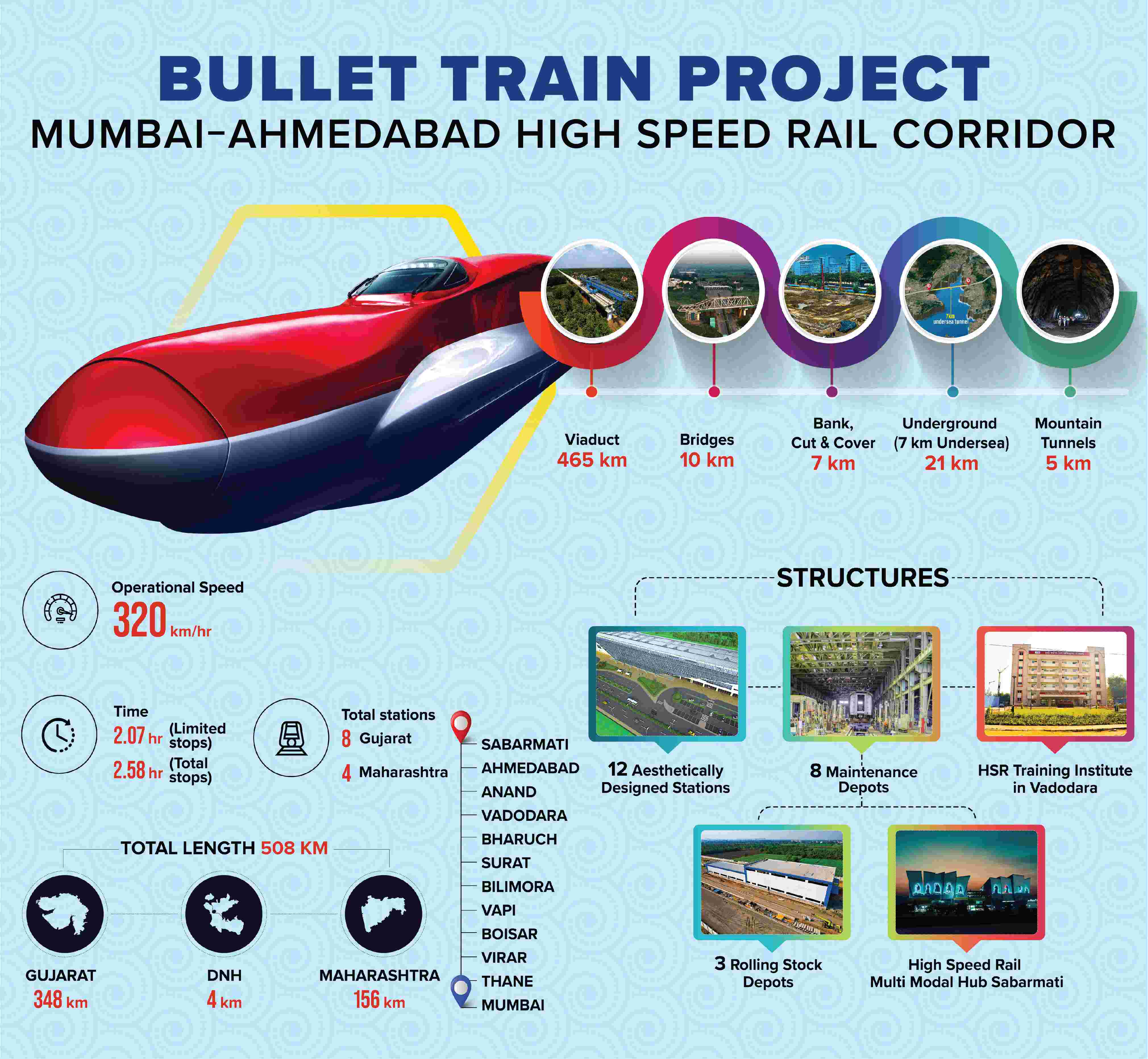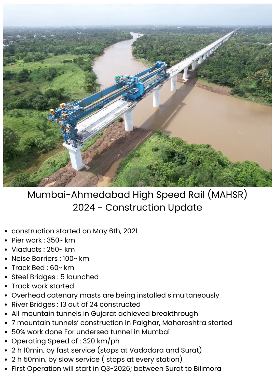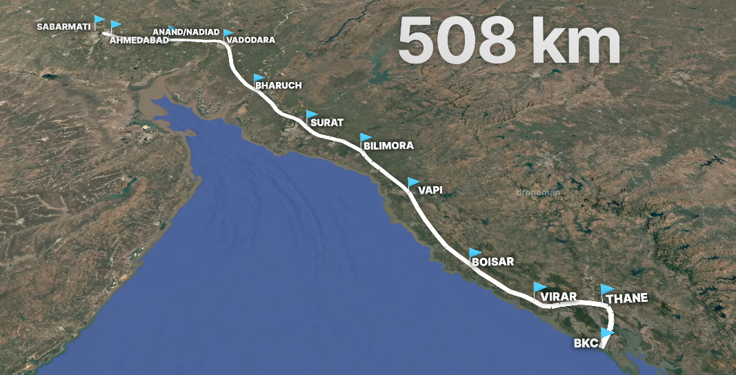 India is building its first HSR corridor at 508 km between Ahmedabad and Mumbai with technical and financial help from Japan. No deadline for the project has been announced yet.