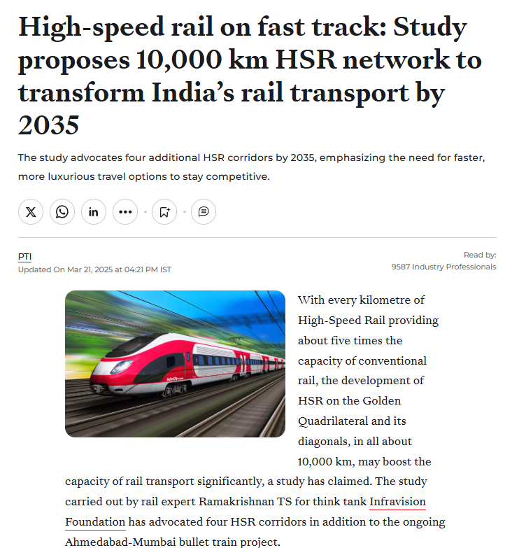 It suggested that India, which aims to become a developed economy before 2047, should have more than one option for faster travel and HSR will fulfil this.