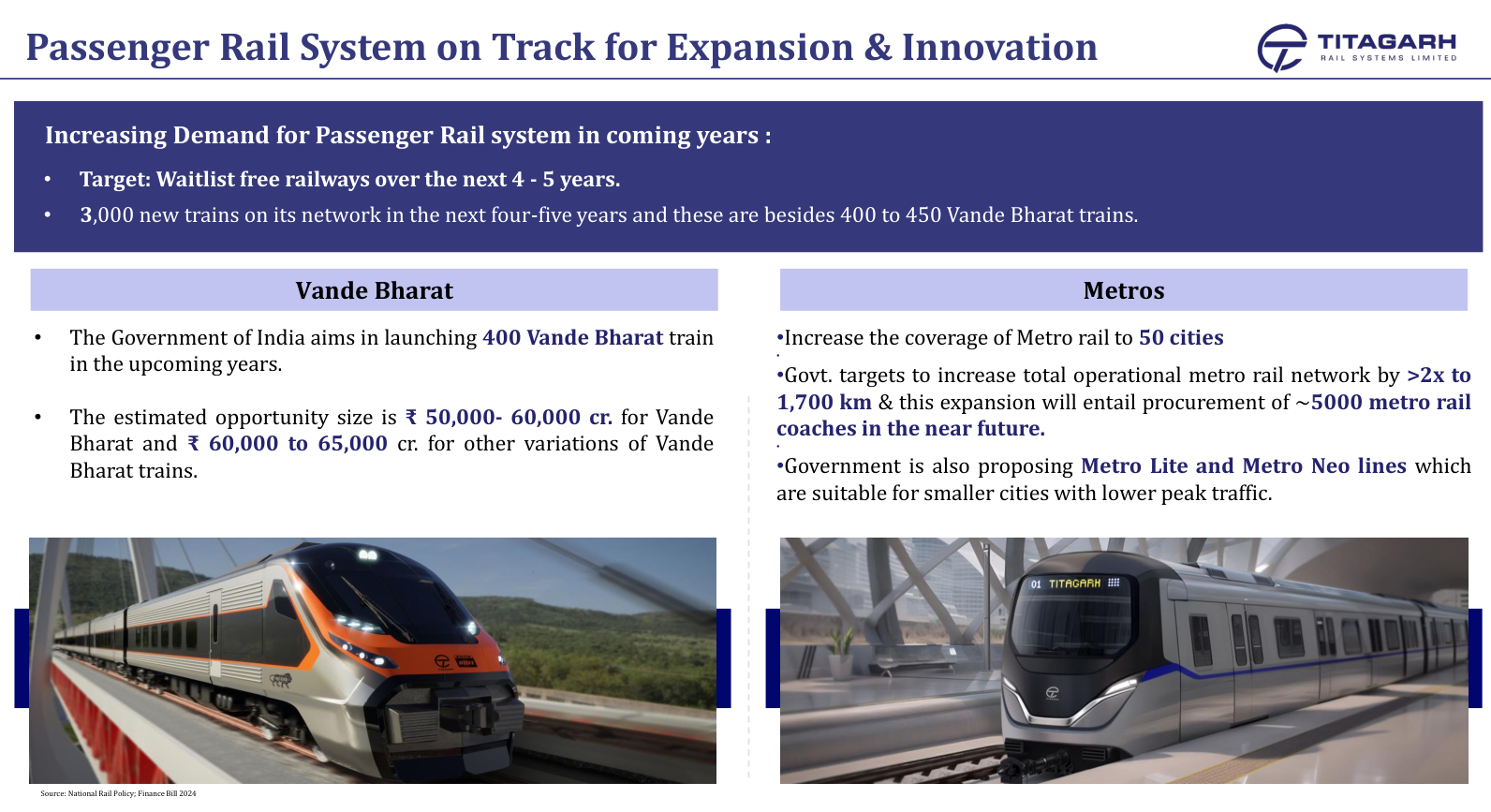 'Accordingly, Indian Railways also increased the supply of AC coaches. Domestic air travel exceeded AC rail travel in 2017-18, which indicates a need for faster travel. The luxury bus travel which constitutes about 70 per cent of the total omni bus travel was about twice that of rail AC travel in 2024.