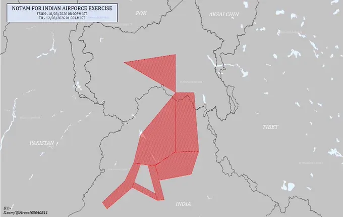 >The IAF has issued a NOTAM for exercises in the western region of India from 02–11 November 2025. The area overlaps with the previously announced tri-service exercise zone, but one change is that for certain hours the flight ceiling is now increased to 40,000 ft.
