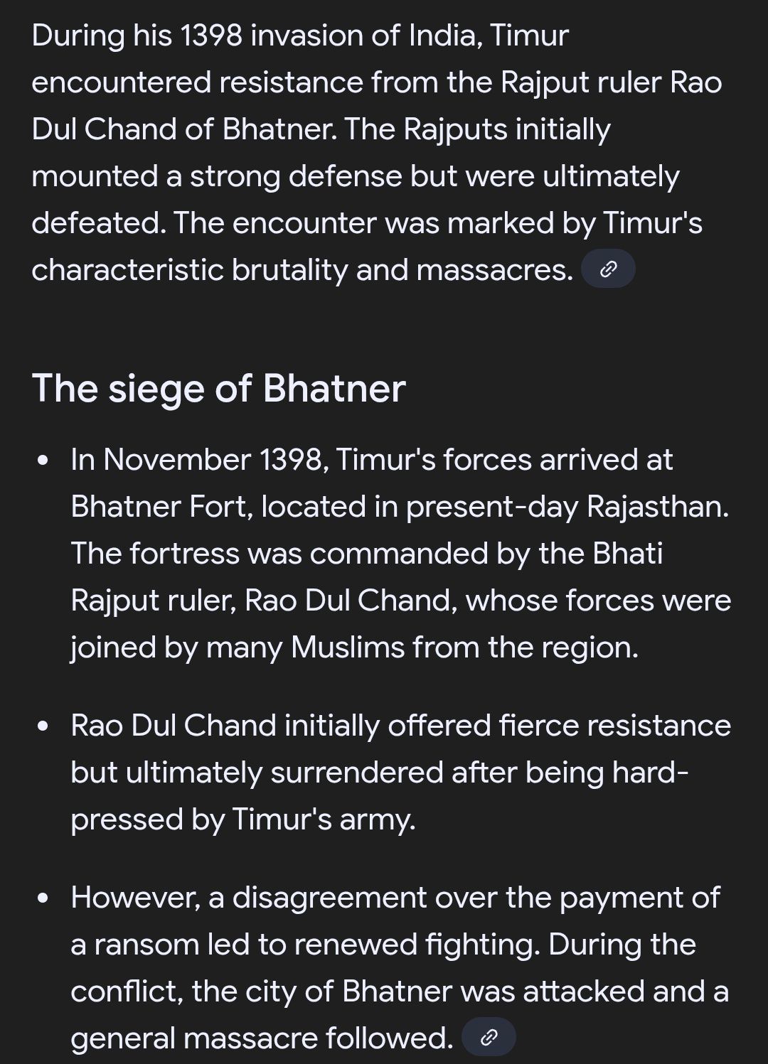 Timur actually lost to the raja of Jammu and failed in his campaign. Greatest conqueror of central asia ran from India kek.