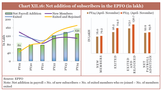 Across age groups, the age group of 18-25 years contributed to 47 per cent of the net payroll addition in April-November 2024. With nearly 61 per cent of net payroll addition coming from less than 29 years of age (in the same period), new jobs in the organised sector are mainly going to the youth.