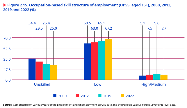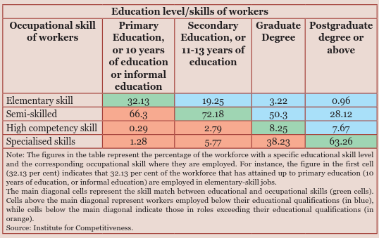 Low educational skills in the workforce make a mismatch between their academic qualifications and job market demands. This mismatch has resulted in over 53 per cent of graduates and 36 per cent of postgraduates being underemployed in roles below their educational qualifications.