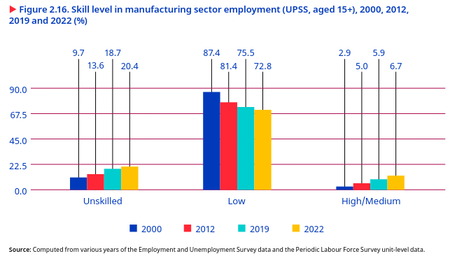 The unemployment rate among youths with a technical training degree or a graduate diploma was even higher than among general graduates and had increased over time. In 2022, the unemployment rate among youths with a graduate diploma was the highest, at 31.1 per cent, closely followed by those with technical training degree, at 29.4 per cent. This indicates the challenges faced by youths with technical qualifications in finding suitable employment opportunities.