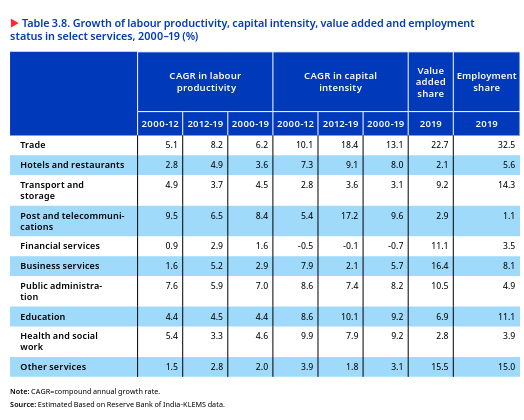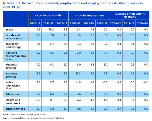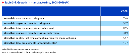 In the roughly two decades between 2000 and 2019, the Indian economy’s production structure moved straight from agriculture to services-led growth without substantial expansion in the share of manufacturing. The manufacturing sector underperformed compared to the overall gross value added (GVA) growth (figure 2.6). As a result, the share of manufacturing in GVA stagnated, at around 15–18 per cent, which was much lower than in developed economies and even much lower than in East and South-East Asian countries.