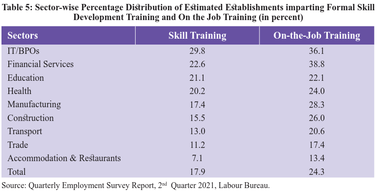 Sectors such as IT/BPO imparted skill training in 29.8 percent of estimated establishments, followed by 22.6 percent