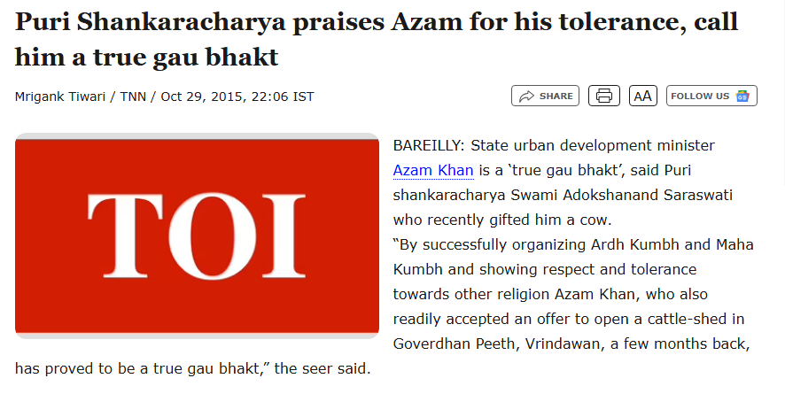 >completely mum on shankarchaya who was praising azam khan, huriyat (kashmiri separatists) so on.