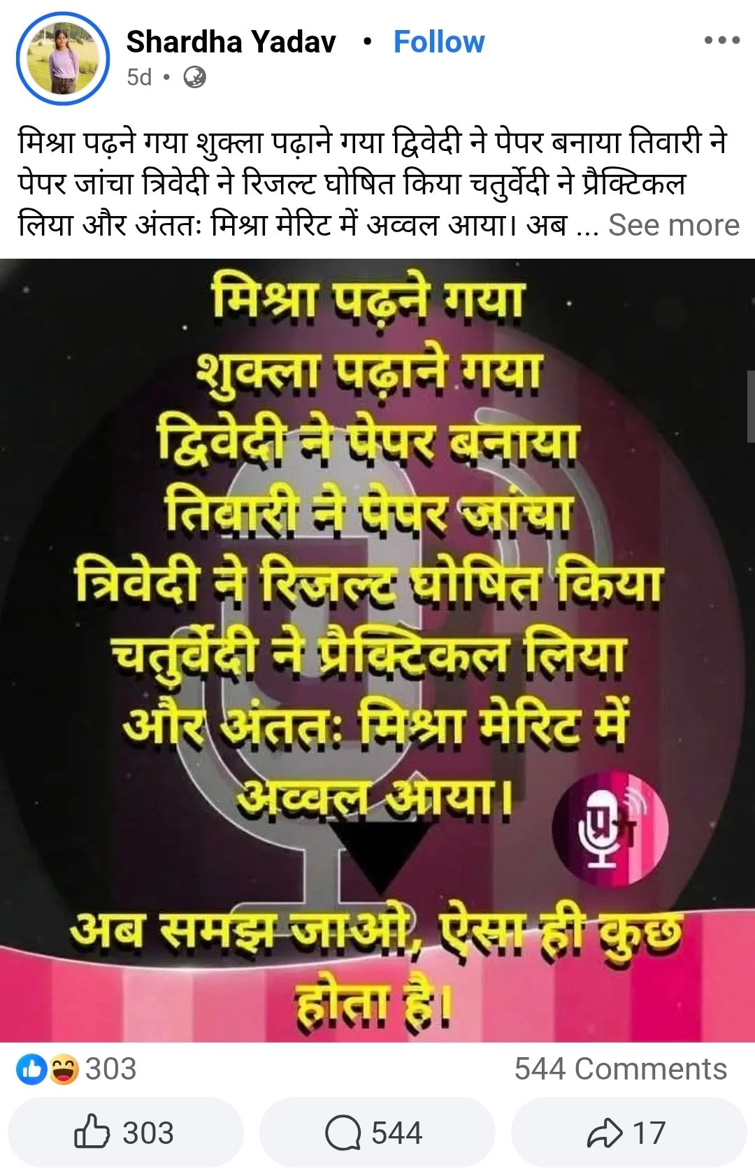 और अंततः मिश्रा मेरिट में अव्वल आया।