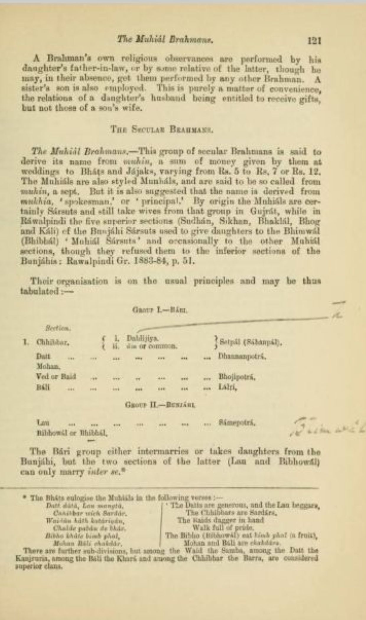 Based on a refined print of the page I could find it was mohyal Brahmins, not mithila, it classified them as subgroup of Saraswat who likely only became a sub branch later.