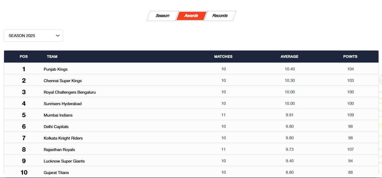 Points table: https://www.iplt20.com/points-table/men