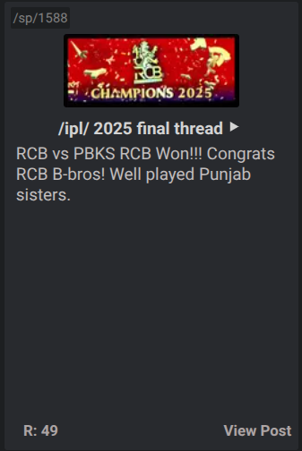 That's called being a Salty fag. If you don't support punjab ignore the final, unless RCB players came and hit your bund 11 times I don't see why you would be so salty. Like one anon posted, imagine losing 18 times and still making everyone seethe. Embarassing.