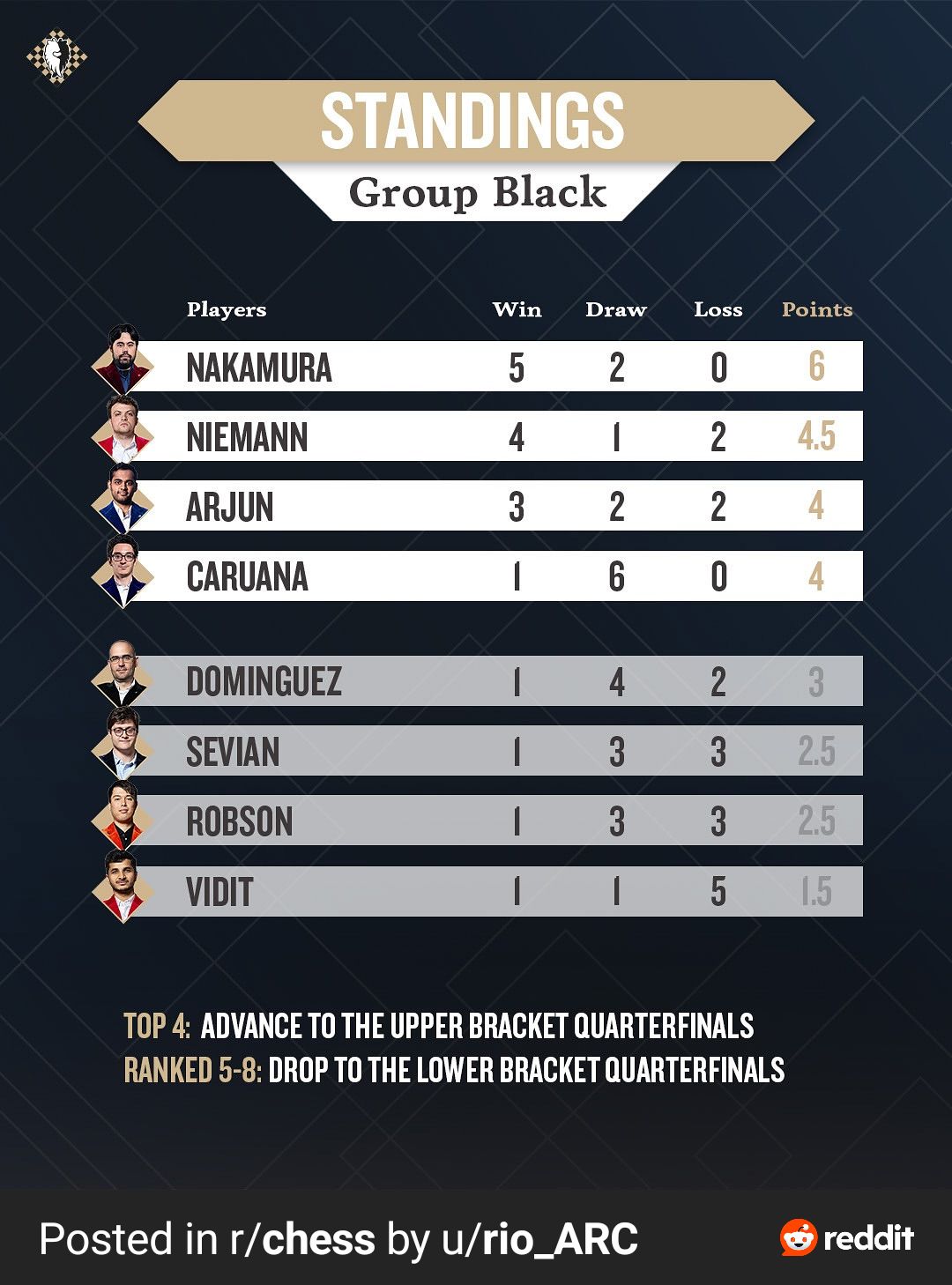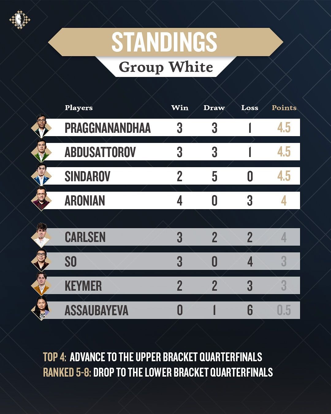 Final standings in group stages. Hikaru is doing great.
